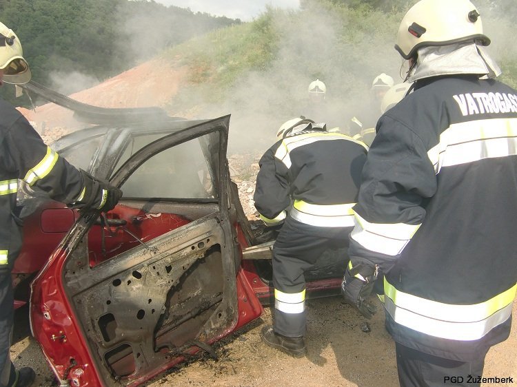 Nato smo se skupaj odpravili v kamnolom, kjer smo s skupnim delom prikazali gašenje vozila z bioversal gasilnikom in vodo. Nato pa smo v mešanih dvojicah (en gasilec iz PGD Žužemberk in en gasilec DVD Belavići) s pomočjo hidravličnega razpirala in škarij razrezali vozilo. Gasilci iz pobratenega društva so bili navdušeni nad opremo in znanjem, ki ga imamo v Žužemberku. Z veseljem smo ugotovili, da bi lahko imeli več podobnih vaj in znanje, ki ga premoremo delili med sabo.